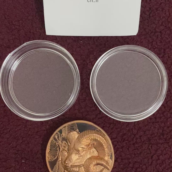 The obverse features a frontal Argali head and inscriptions, while the reverse displays a detailed side profile. Each coin is struck from 50 g of .999 fine copper with a proof-like finish and comes with a protective capsule and Certificate of Authenticity.