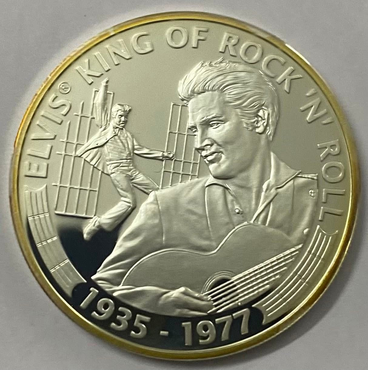 Issued to mark the 30th anniversary of Elvis Presley’s passing, this crown-sized silver proof coin honors his legendary Jailhouse Rock performance. The reverse features a vibrant image of Elvis in motion, capturing the energy of 1950s rock ‘n’ roll. The obverse bears the effigy of Queen Elizabeth II by Ian Rank-Broadley. A fitting tribute to the King of Rock and Roll.